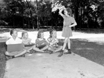 Girl Scouts at Summer Camp. Grace Smith, models for a drawing class composed of, left to right, Nancy Kay McDaniel, Joan Hewatt, Alice Ann Denny and Lalla Anne Critz.