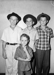 Polio fund collectors. Back row, left to right, Jerry Moore, George Stewart and Merlyn Alexander, front, Jimmie Moore.