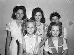 Polio fund collectors. Back row, left to right, Darla Jean Cain, Ann Hodges, and Arita Beth Hodges; front row, Betty Joyce Cain, left, and Lola Brown.