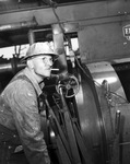 Plemons, T. M.; Petroleum workers; Petroleum industry; Coveralls; Cigarettes; Smoking; Helmets; Machinery; Oil well drilling rigs; Hanlon-Buchanon, Inc.