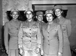 Texas officers of the Women's Army Auxiliary Corps (W. A. A. C.) who were guests at a meeting of W. A. A. C. recruiters at Hotel Texas. They are, left to right, Lieutenant Xelma Mullinax, of Dallas, Texas, Lieutenant Janet Brown, of Fort Worth, Texas, Lieutenant Alyne Burton, of Fort Worth, Texas, Lieutenant Gladys Foley, of South Bent, Texas, and Lieutenant Mary Jane Thomas, of Carthage, Texas. They are all wearing identical W. A. A. C. uniforms.