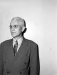A. C. Broussard was elected chief of Knights of Columbus in Fort Worth, Texas, as well as grand knight of the Monsignor R. M. Nolan Council of the Knights of Columbus. He is shown standing in front of a blank wall, wearing a double-breasted suit and a pair of eyeglasses. He is facing slightly to the left.