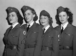 Helping in Smoke Drive. Sergeant Dorothy Stone, Private First Class Wilma Anderson, Private Hazel Ferguson and Corporal Eula Anderson. The four women are shown standing in front of an empty wall, wearing their Guardette uniforms. Anderson and Ferguson are looking on at the camera, while Stone and Anderson look to their right.