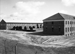 Internment camp at Springtown, Oklahoma. Brick dormitories within stockade.