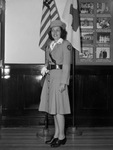 Miss Irene Keller modeling Red Cross Motor Corps uniform.