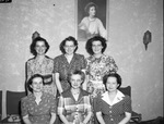 THEY'RE TEACHING TEACHERS. Seated left to right: Mrs. Amos Myers (Breckenridge) Miss Florence Carmichael, (Saint Louis), Mrs. Dean Chenoweth, San Angelo, Standing left to right: Miss Elizabeth Bser, Miss Lois Swick (Amarillo, Texas), Miss Verna Evelyn Johnson.