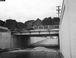 Santa Fe Train wreck. 41 freight cars wrecked. #22 East Vickery Street underpass where 41 loaded freight cars broke loose from an engine and crashed into a derail to cause an estimated loss of $170,000.