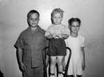Polio fund collectors. Left to right, Herbert Rush, Dixie Acuff and E. W. Acuff standing on chair.