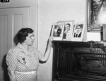 MOTHER, SONS, PURPLE HEART. Mrs. Eugenia King Heath looking at pictures of her three sons (left to right) Private F. C. Heath, Private Thomas D. Heath and Private Buford Heath.