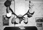 Shots of anthers in Hotel Texas' Officers lounge covered with officer's caps.