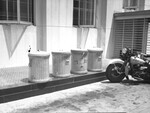 City clean-up campaign. Shot of the city hall garbage cans.