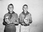 Polio fund. Boy Scouts who collected $117 in one day, Jerry McKown, left, and Bobby Rawlings.