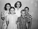 Polio Fund Collectors. Left to right, back row, Eleanor Orth, Marinel Bacon, Tom Brewer; Front row, Jeanette Hoskins, and Shirley Anne Bacon.