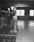 Ice factory, Harmon Burrough, plant engineer, with two 300-pound blocks of ice, 07/28/1943