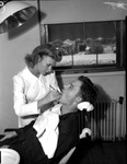 Harmon General Hospital at Longview, Texas. Private First Class Speed having his teeth cleaned by Miss Earline Turlington.