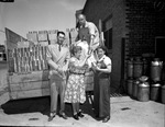 Vandervoort Creamery. Canning Season. Ed R Foster, Mrs. Jenie Mings, Mrs. Hugh Booher and Jimmie White, loading a truck with canned good.