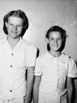 Polio fund collectors. Left to right, Mary Lou Robertson and Patsy Davis.