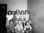 Polio fund collectors. Back row, left to right, Pearl Francis Inman, Mary Venus Akins, Nila Jean Morris, Patsy Ruth Akins and LaRue Hager. Front row, Rod Inman, Malcolm and Richard Akins.