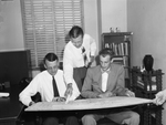 Polio specialists. Seated, left, Dr. H. E. Pearson; standing, Dr. G. C. Brown, and right, Dr. R. C. Rendtorff.