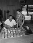 Mrs. Willie Fay Lewis, director of Fort Worth's Lighthouse for the Blind, helps Virgil Alexander who works to sort items in manufacture of twin-engine training planes at Glove Aircraft Corporation, 08/03/1943