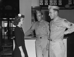 Service Men's Center. Miss Dorris Stuart, left, switchboard operator, and Technical Sergeant Wilton (Tom) Madden, and Staff Sergeant Willard (Jerry) Madden.