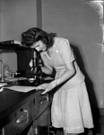 Nursing Scholarships. Miss Mary Martin, student nurse, at laboratory work.
