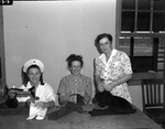 (Left to right) Mrs. Jeff S. Henderson, chairman of sewing room group, Mrs. John W. Hollington, chairman of the knitting group, and Mrs. William L. Bartley.