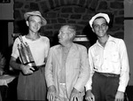 Junior golf tournament. Jack Kibbee, champion, holding trophy after receiving it from Dr. Alden Coffey, (center). Charles Tims, right, was runner-up.