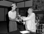 Junior golf tournament. Jack Kibbee receiving trophy from Dr. Alden Coffey.