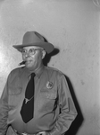 Roscoe Parks has been a Texas State Game Warden for the past 15 years. He is being named captain of the region in which Fort Worth, Texas, is located. The region includes 23 counties. Captain Parks is shown standing against a wall, smoking a cigar. He is dressed in a cowboy hat, button-up shirt, necktie, and has a Game Warden badge pinned to his shirt.