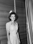 Miss Shirley Jean Williams recently married Francis Scott Ratcliff. The couple married in Florida and have returned to Fort Worth, Texas. Mrs. Ratcliff is shown standing in front of a window covered with blinds and curtains. She is wearing a hat, a blouse with lace around the collar, and a skirt.