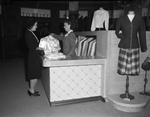 Washer Brothers, a clothing store in downtown Fort Worth, Texas, is opening Sportswear Circle. The new department is on the third floor of the store and features a complete new selection of sportswear. The new department brings all of the store's ladies' ready-to-wear departments together on one floor. Mrs. Ruby Dodsworth is managing the Sportswear Circle. A woman is shown at the counter, looking at a dress with a saleswoman.
