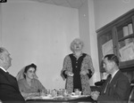 Sister Elizabeth Kenny, (standing), Doctor Charles H. Harris (left) and Doctor Charles F. Clayton (right) (Women seated at left not identified).