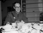 Peter Masefield is a British war correspondent and aviation authority. He is stopping in Fort Worth, Texas, as part of his nationwide tour. Mr. Masefield believes that the war in Europe will end by Christmas of 1944. He is shown eating lunch in his hotel room at the Blackstone Hotel. He is dressed in a military uniform.