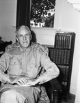 Colonel F. S. Gillespie is visiting Fort Worth, Texas. He is shown sitting on a chair, dressed in his military uniform. There is a bookshelf against the wall in the background.