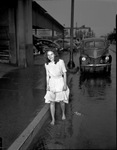 Marta Chamberlin wading in the rain.