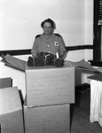 Mrs. E. H. Bursey, chairman of the Red Cross knitting department, packed the last of the emergency order of 1,000 pairs of trigger mittens with rifle fingers, called by the War Department for the cold climates. The triggers mitts were completed in exactly four weeks and she was thankful for all knitters of Fort Worth for helping meet an emergency order. Published on September 7, 1943.