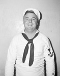 Recent Visitor -- Petty Officer Second Class A. C. Brock Junior, son of Mister and Misses A. C. Brock, 3113 Avenue N, is stationed at Williamsburg, Virginia. He visited here recently. Brock Junior is pictured here. A young male in navy uniform, standing, facing front and smiling. Published in The Fort Worth Star-Telegram morning edition, September 13, 1943.