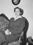 Mrs. J. Harrold Evans, has returned from Seattle, where she spent the summer with her husband, Lieutenant Evans, stationed there with the Army. She is sitting on a sofa wearing a skirt suit. Published in Fort Worth Star-Telegram, morning edition, September 15, 1943.