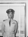 Major Aizad Awan, squadron leader in the Indian Air Force, was in Fort Worth Sunday to begin a tour of training centers and aircraft production plants. He arrived in the United States a month ago from India via London. While here, he is meeting the Air Force personnel and studying the training methods to form the basis of a report to his country. Fort the past month he has been in Washington conferring with Government and military officials and attaches of the United Nations. Awan has been flying for 14 years. He received his commission from the RAF College in England in July, 1932. At the outbreak of the war he served with a coastal patrol group in India protecting the West Coast bordering on the Arabian Sea from submarines. In this picture, he stands with his hand behind his back in front of a window. Published in Fort Worth Star-Telegram, morning edition, September 3, 1943.