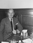 Captain Gill Robb Wilson, president of the National Aeronautics Association, is sitting at a dinner table holding his glasses in his left hand with his left elbow in the table. Published in Fort Worth Star-Telegram, evening edition, September 13, 1943.