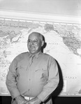 Colonel Carl L. Caphton, professor of military science and tactics.A middle-aged man in military shirt, trousers, and tie with rifle insignia on his collar. He's standing in front of a world map of the era that includes the Union of Soviet Socialist Republics and the territories of Alaska and Hawaii. Clipping:"New Military Professor Talks With Green About Plans to Increase InterestPlans for stimulating interest in military training among students in Fort Worth high schools were discussed Wednesday when Col. Carl L. Caphton, newly appointed professor of military science and tactics, reported for duty to Superintendent Green.Colonel Caphton on Sept. 30 will relieve Lt. Col. Thomas C. Brown, who is retiring.Until that time, Colonel Caphton explained, he will observe present training methods to get his 'feet on the ground.''I don't plan on any radical changes,' he said. 'The program is laid out by the War Department for R.O.T.C. units and it is our job to follow that outline.'Col. Caphton came to Fort Worth from tExas A. & M. College, where he had been assigned as senior instructor and co-ordinator of military activity.He said he hoped to see the dummy weapons now in use by Fort Worth R. O. T. C. cadets replaced eventually by real rifles, but he pointed out that even such senior military schools as Texas A&M are now using similar dummy equipment and there is little expectation that real rifles can be supplied until the regular army is entirely equipped with the new-type Garands.Col. Caphton looked over reports showing that enrollment of Fort Worth students for military training during the Fall term has decreased since last year, but he attributed this to the fact that older boys are now engaged in the industrial work and many of the 17-year-olds have enlisted in the Army and Navy.The new military science professor served in Fort Worth as instructor for the 142nd Infantry of the Texas National Guard in 1936.He attended the United States Naval Academy at Annapolis for three years, but resigned in 1912, took an examination and was commissioned as a second lieutenant in the Army. In 1913, he was sent to Texas for duty on the Mexican border, then spent several years in Hawaii. Subsequent assignments took him to various military posts in the United States, including five years on the staff of the 79th Division adjutant in Philadelphia.Colonel Caphton returned to Texas in 1936 and in 1940, when the Texas National Guard was mobilized, he was placed in charged of training and was made advisor to the division commander.Assigned to Texas A. & M. in 1941, Col. Caphton remained there until accepting the present appointment, except for a brief tour of duty at Eighth Service Command Headquarters in 1942.â€â€Star-Telegram Photo."Stamped Star-Telegram. Eve. Sep. 15, 1943