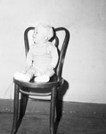 Kenneth Wayne McDonald, eight-months old. In the photograph, baby McDonald is sitting on a wooden dining room chair with a plain wall behind him and wood flooring. He is wearing a romper with the straps attached by two buttons, a long sleeve top, ankle high socks, lace shoes and a knitted cap. He is staring off to the left. Both of his hands are in a closed fist position with each hand placed on the corresponding leg. Private McDonald in his first letter to his son, Kenneth , told him that he was writing to him, even though he knew that he couldn't read, because he wanted him to know why his father was away. 'I surely do miss your cuddling and loving you always gave me when I came home form work. But dad has a bigger job to do now so that you and many others may have a good and clean county to live in. Son, you have the best country... if you were my age now, you could realize.'