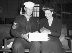 Fried chicken and bread are in this box for F. W. Gilbow, first class gunner's mate, with his wife.