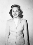 Viola Martinets, bride-elect of Roy Garbarine. Miss Martinets graduated from Academy High School at Little River and the University of Texas, where she was a Bluebonnet Belle nominee and was active in intra-mural sports. She taught in the high school at West before joining as a junior civil engineer with CAA, in the airways engineering branch. She is engaged to be married to Roy Garbarine of Bristol, Virginia. In the photograph, Miss Martinets stands in front of a plain wall. She is wearing a women's suit jacket (buttoned closed with three buttons), a shirt and a pearl necklace. She is smiling and looking at the camera.
