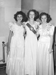 Miss Twila Miller, center, "Queen Regent," and Misses Ruth Sherman, left, and Patsy Jean Riddle. All of them are seen to be wearing Dresses.