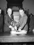C. A. Tannahill, left, and Reverend James N. Morgan, pastor, shown burning a note at North Fort Worth Baptist Church.