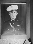 Lieutenant Warren P. Nichols, is a Marine Corps fighter pilot. He is home on leave in Fort Worth, Texas. Lieutenant Nichols wears the Presidential Unit Citation and has been recommended for the Air Medal. He has a black and white cocker spaniel, "Flaps" that flies with him. Lieutenant Nichols is pictured in his military uniform.
