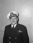 Ensign Ralph C. Greene has ten years of service with the Navy. He was back in Fort Worth, Texas to visit his brother H. W. Greene. Ensign Greene has seen the world since joining the Navy. He was involved in eight engagements and was Commended for action in the Kula Gulf. Ensign Greene is standing against a wall dressed in his military uniform.