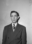Stanley Gunn is standing against a wall. He is wearing a double breasted suit with a sweater. Mr. Gunn is correspondent for the Fort Worth Star-Telegram.